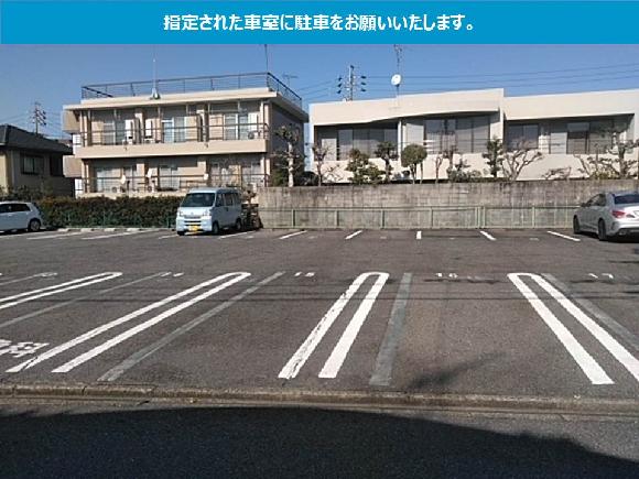 【駐車の際にはご注意ください】 ●駐車場内の通行時は、歩行者・他の車両に充分ご注意ください。 ●掲載の配置図を参考に、お間違いのないように駐車してください。 |