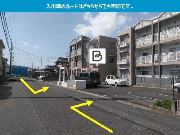 ●写真に掲載しております黄色い線が、ルートになります。写真を参考に出庫、駐車をお願いします。