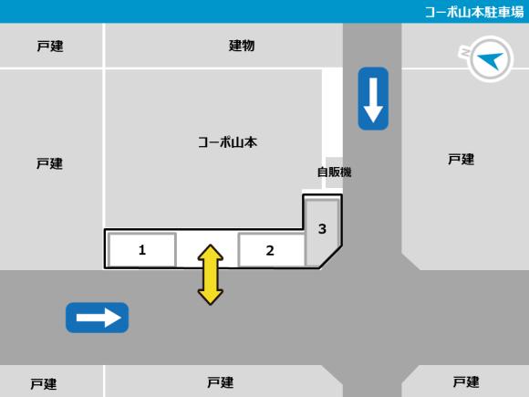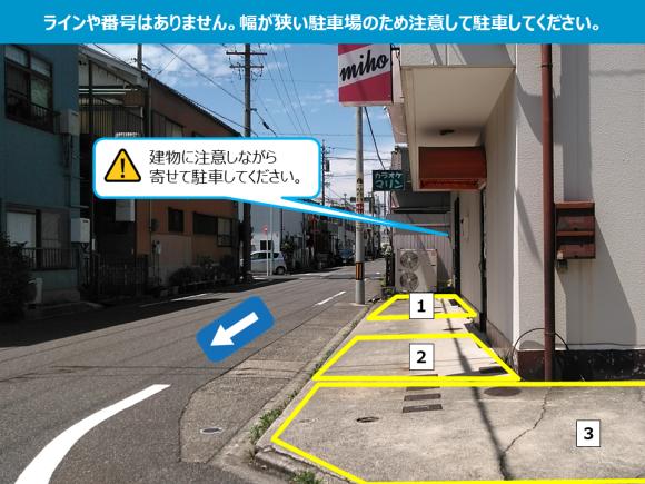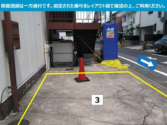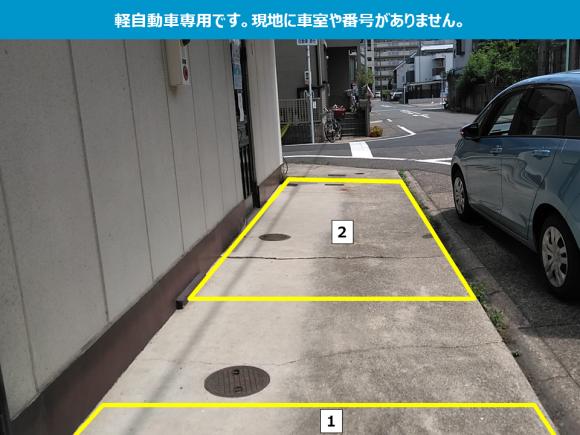 ※横幅180cmの軽自動車専用(バイクも可能)です。 ※現地に車室番号とラインがございません。レイアウト図と写真を必ずご確認いただき、他の車室の方にご迷惑をおかけしないようにご利用いただきますようお願いいたします。 【駐車場へのご案内】 ※前面道路は、一方通行です。お気をつけください。 ※住所をナビに入れても正しく表示されない場合があります。 【駐車の際にはご注意ください】 ※掲載の配置図を参考に、お間違いのないように駐車してください。 ※マンションの駐車場となっておりますので、住民の方にご配慮のある駐車をお願い致します。 |