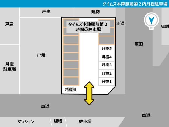 ※時間貸し「タイムズ本陣駅前第2駐車場」内の月極専用区画です。 ※間違えてコインパーキング(フラップ区画)を利用されますと現地にて精算が必要になります。またタイムズのB料金の返金等もできかねますので、くれぐれもご注意ください。 【駐車場へのご案内】 写真を参考に入出庫、予約メールで指定された車室番号への駐車をお願いします。 【駐車の際にはご注意ください】 ●掲載の配置図を参考に、フラップ区画やカーシェア区画にお停めにならないようご注意ください。 ●周辺は住宅地ですので、アイドリング、夜間のドア開閉などに配慮をお願いします。 |