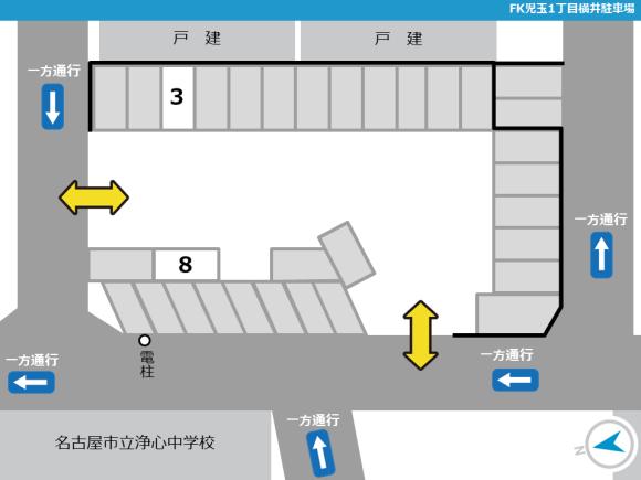 ※前面道路は一方通行です。入出庫の際はお間違いのないようにご注意ください。 ※交差点すぐの駐車場です。歩行者や縁石など十分にご注意してご利用をお願いいたします。 【駐車場へのご案内】 ●本ページ記載の住所で検索しても、カーナビ等で正しく表示されない場合があります。「GoogleMapsで見る」のボタンから、正しい位置をご確認ください。 【駐車の際にはご注意ください】 ●現地に記載の番号・区画線が見えづらい場合があります。掲載の配置図を参考に、お間違いのないように駐車してください。 ●アイドリングストップにご協力をお願いします。 |