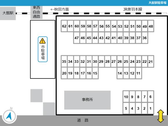 大館駅まで徒歩2分の駐車場。駅周辺でのお食事の際や、観光、パークアンドライドなど様々な用途でご利用いただけます!