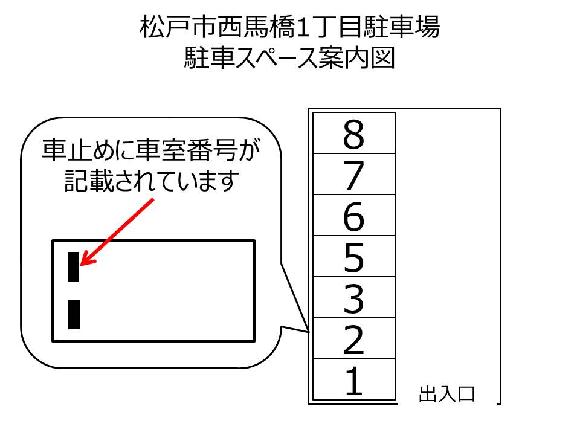 馬橋小学校まで徒歩5分、線路沿いの駐車場です。馬場駅からの常磐線ご利用にも便利!現地では、車止めに記載されている車室番号をご確認ください。