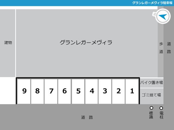 ※アイドリングストップにご協力お願いいたします。 ※写真のレイアウトをご確認いただき、ご自身の番号と一致する駐車場所をご確認ください。 |