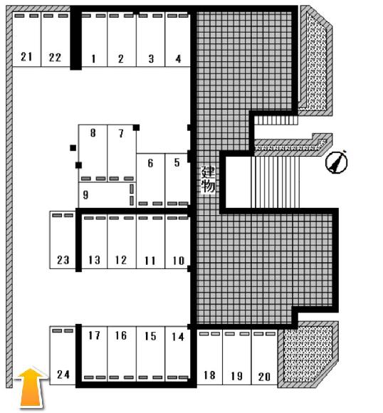 ●駐車スペースに番号の記載がない場合があります。掲載の配置図を参考に間違いのないように駐車してください。 ●場内は狭い部分がありますので、通行時は充分にご注意ください。 ●一部、屋根のないスペースがあります。 ●アイドリングストップにご協力ください。 |
