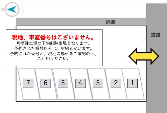 【駐車場へのご案内】 ●月極駐車場内に駐車区画があります。 ●カーナビ等でピンポイントに指定されない場合は、「GoogleMapsで見る」のボタンから正しい位置をご確認ください。 【駐車の際にはご注意ください】 ●周辺道路の交通量が多く、自転車・歩行者に十分注意してください。 ●現地に記載の番号はございません。 駐車場情報のレイアウト写真を確認の上で指定の区画にお停めください。 ●周辺は住宅地ですので、アイドリング、夜間のドア開閉などに配慮をお願いします。 当駐車場はB利用と月極契約とを並行して募集しているため、万が一双方のお申し込みがバッティングしてしまった際にはご利用いただけない可能性がございます。恐れ入りますが予めご了承のうえご予約をお願いいたします。 |