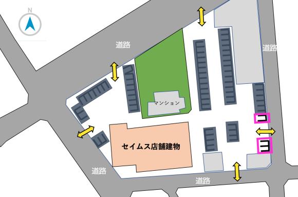 【駐車場へのご案内】 ●本ページ記載の住所で検索しても、カーナビ等で正しく表示されない場合があります。「GoogleMapsで見る」のボタンから、正しい位置をご確認ください。 【駐車の際にはご注意ください】 ●レイアウト図と写真をご確認いただき、必ずレイアウト図ピンクの枠で囲われた指定のエリアの区画に駐車してください。 ●アイドリングストップにご協力をお願いします。 |