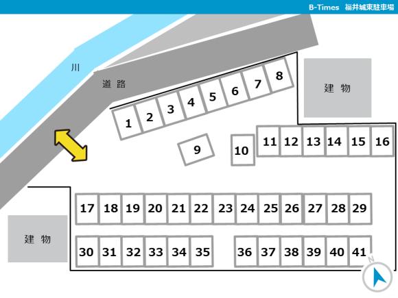 【駐車場へのご案内】 ●本ページ記載の住所で検索しても、カーナビ等で正しく表示されない場合があります。「GoogleMapsで見る」のボタンから、正しい位置をご確認ください。 ●駐車場入り口への進入路が狭くなっていますので、通行時は歩行者等に充分ご注意ください ●予約完了時に車室番号をご案内します 【駐車の際にはご注意ください】 ●駐車場内の通行時は、歩行者・他の車両に充分ご注意ください。 ●掲載の配置図を参考に、お間違いのないように駐車してください。 |