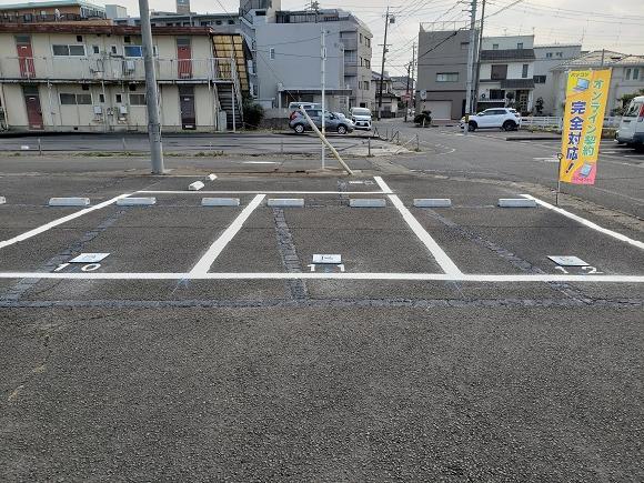 【駐車場へのご案内】 ※時間貸し駐車場が併設されている駐車場の月極区画内です。 ※カーナビ等でピンポイントに指定されない場合は、「GoogleMapsで見る」のボタンから正しい位置をご確認ください。 ※側溝が隣接しておりますので、お足元にご注意ください。 【駐車の際にはご注意ください】 ※現地に記載の番号が見えづらい場合があります。駐車場情報のレイアウト写真を確認の上で指定の区画にお停めください。 ※周辺は住宅地ですので、アイドリング、夜間のドア開閉などに配慮をお願いします。 当駐車場はB利用と月極契約とを並行して募集しているため、万が一双方のお申し込みがバッティングしてしまった際にはご利用いただけない可能性がございます。恐れ入りますが予めご了承のうえご予約をお願いいたします。 |