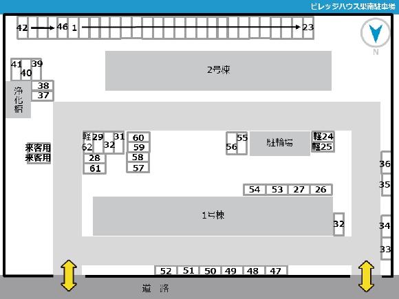 ※広い敷地のため、駐車前に駐車位置(指定区画番号)を確認してください。 ※指定区画以外には月極契約者がいますので、必ず指定区画を確認してお停めください。 ※周辺住宅のご迷惑にならないよう、アイドリングストップにご協力をお願いします。 ※団地内は徐行運転で安全に通行をお願いします。 |