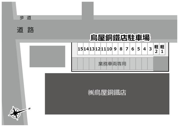 ※現地に番号の記載がありませんので、掲載の配置図を参考に間違いのないように駐車してください。 ※ご予約の駐車区画は道路に面したスペースですので、掲載の画像を参考にお間違いのないようにご注意ください。 ※カラーコーンが設置してある場合は、カラーコーンを後方へ移動してご利用ください。 |
