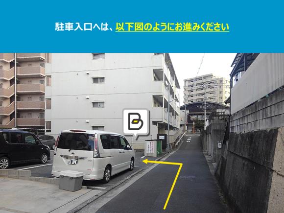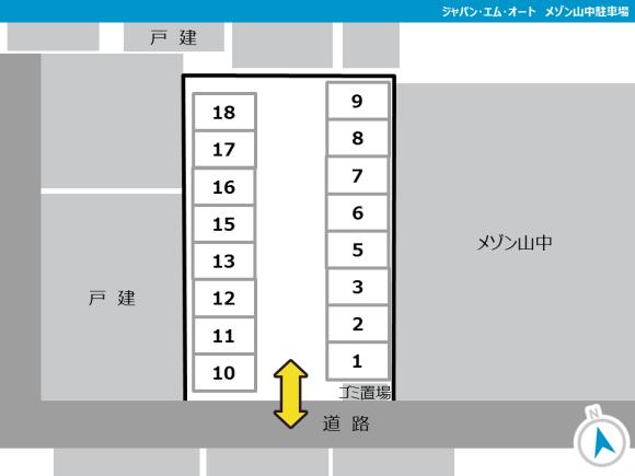 【駐車場へのご案内】 ●月極駐車場内に駐車区画があります。 ●カーナビ等でピンポイントに指定されない場合は、「GoogleMapsで見る」のボタンから正しい位置をご確認ください。 【駐車の際にはご注意ください】 ●周辺道路の交通量が多く、自転車・歩行者に十分注意してください。 ●現地に記載の番号が見えづらい場合があります。駐車場情報のレイアウト写真を確認の上で指定の区画にお停めください。 ●周辺は住宅地ですので、アイドリング、夜間のドア開閉などに配慮をお願いします。 |