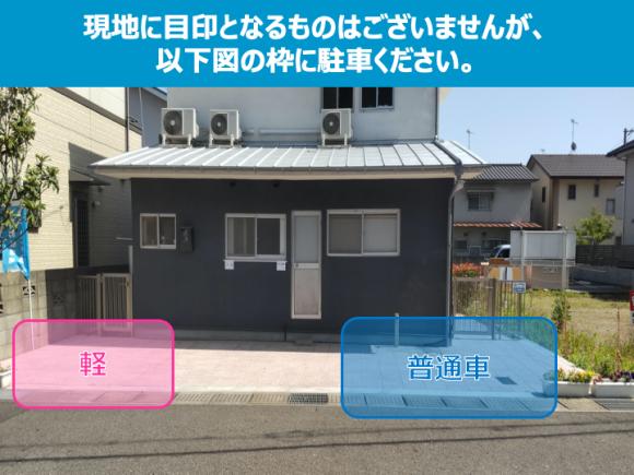 ・突然の来客用でお困りの方に最適です。段差もなく、接道長さは10mで初心者の方にも停めやすい駐車場です。 ・軽は東側、大型普通車は西側に駐車して下さい。 |