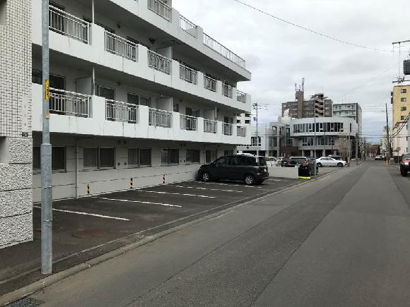 JR琴似駅すぐ!マンション前の駐車スペースです。札幌競馬場へは駅前からバスに乗って約10分ほどでアクセス可能です。