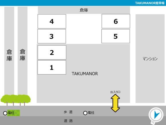 ■ご利用いただく駐車場の住所で検索しても、ナビや地図アプリでは正しく表示されない場合がございます。 住所下にある「GoogleMAPで見る」のボタンを押して頂くと正しい場所が表示されます。 ■現地に到着した際は、必ず写真や配置図をご確認の上、駐車してください。 間違って他の利用者の場所に駐車しないよう、お気を付けください。 ※現地には番号が振られていないケースもございます。 |