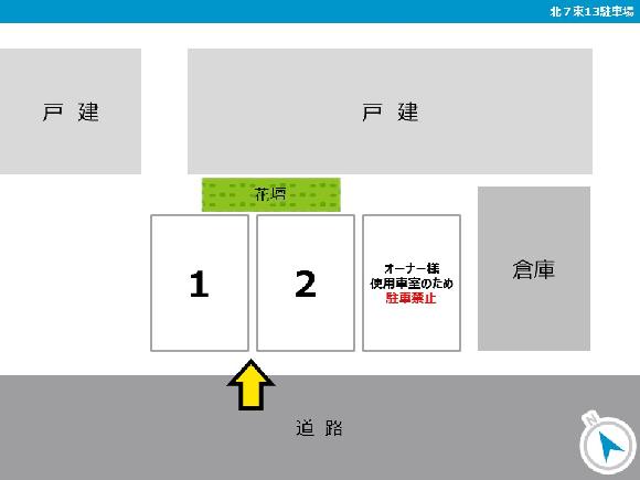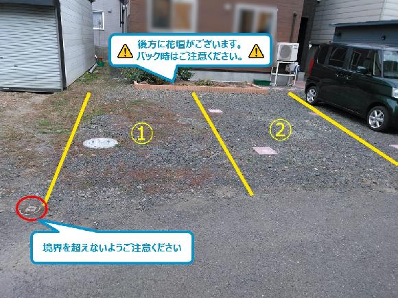 ◆◇◆当駐車場での車中泊はご遠慮ください◆◇◆ 駐車場オーナー様のご迷惑となりますのでキャンピングカー等での車中泊はご遠慮いただきますようお願いいたします。 ◆◇◆利用上の注意◆◇◆ 後方に畑がありますのでバックしすぎにご注意ください。 長時間のアイドリングは控えてください。 駐車場までの道路は車幅が狭くなっておりますので、お気をつけください。 |