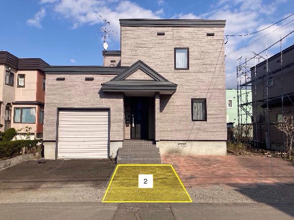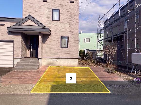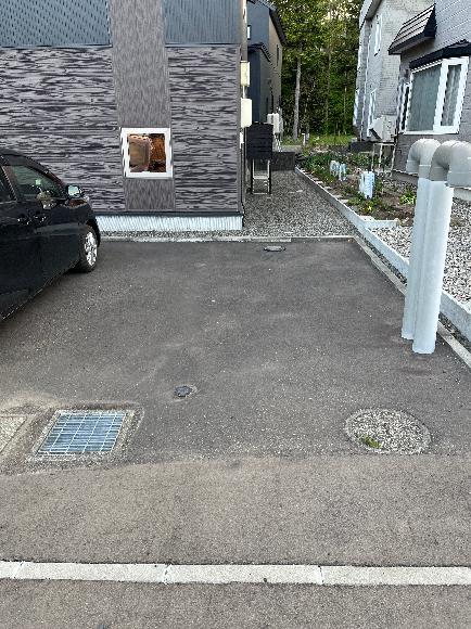 目の前の道路が北から南(家屋を背にして左から右)の一方通行道路なのでご注意願います。 駐車場内に家に空気を取り込む通気口が立っていますのでドアの開閉時ご注意願います。 |