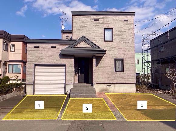 1番車室(シャッター前) 2番車室(玄関階段前) 3番車室(向かって右側) 翌日のAM3:00まで延長無料(連絡不要) |