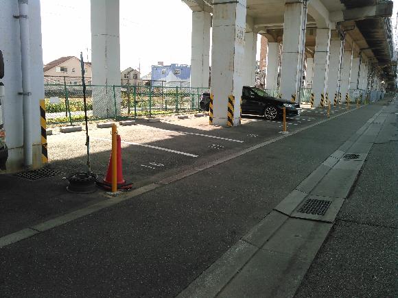 ■バイクでの駐車できません。お気を付け下さい。 ■JR高架下につき柱にご注意ください。 ■出入口が斜面となっております。ご注意下さい。 |