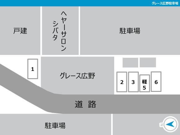【駐車場へのご案内】 ●マンション「グレース広野」の駐車場内です。 ●カーナビ等でピンポイントに指定されない場合は、「GoogleMapsで見る」のボタンから正しい位置をご確認ください。 【駐車の際にはご注意ください】 ●現地に記載の番号が見えづらい場合があります。駐車場情報のレイアウト写真を確認の上で指定の区画にお停めください。 ●周辺は住宅地ですので、アイドリング、夜間のドア開閉などに配慮をお願いします。 |