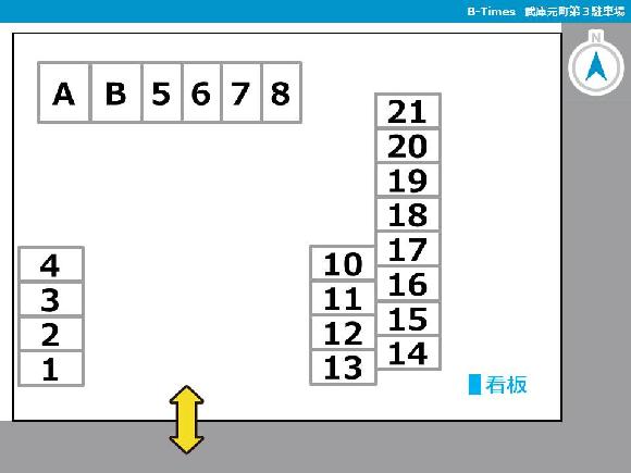 【駐車場へのご案内】 ●タイムズ武庫元町第3の駐車場です。 ●カーナビ等でピンポイントに指定されない場合は、「GoogleMapsで見る」のボタンから正しい位置をご確認ください。 【駐車の際にはご注意ください】 ●周辺は住宅地ですので、アイドリング、夜間のドア開閉などに配慮をお願いします。 |