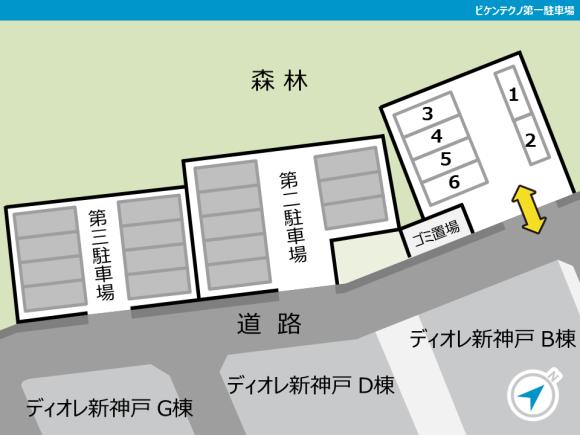 【駐車場へのご案内】 ●写真に掲載しております黄色い線が、ルートになります。写真を参考に出庫、駐車をお願いします。 ●本ページ記載の住所で検索しても、カーナビ等で正しく表示されない場合があります。「GoogleMapsで見る」のボタンから、正しい位置をご確認ください。 ●駐車場入り口への進入路が狭くなっていますので、通行時は歩行者等に充分ご注意ください。 ●Bマークがございます車室になります。月極車室とお間違いのないようご注意ください。 ●前面道路が、狭くなっておりますので駐車の際はご注意願います。 【駐車の際にはご注意ください】 ●駐車場内の通行時は、歩行者・他の車両に充分ご注意ください。 ●掲載の配置図を参考に、お間違いのないように駐車してください。 |