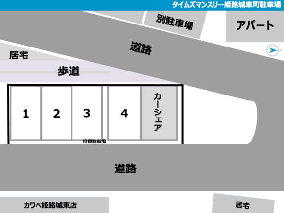 【駐車場へのご案内】 ●写真に掲載しております黄色い線が、ルートになります。写真を参考に出庫、駐車をお願いします。 ●本ページ記載の住所で検索しても、カーナビ等で正しく表示されない場合があります。「GoogleMapsで見る」のボタンから、正しい位置をご確認ください。 ●駐車場入り口への進入路が狭くなっていますので、通行時は歩行者等に充分ご注意ください。 ●指定された番号に駐車願います。 ●前面道路が、狭くなっておりますので駐車の際はご注意願います。 【駐車の際にはご注意ください】 ●駐車場内の通行時は、歩行者・他の車両に充分ご注意ください。 ●掲載の配置図を参考に、お間違いのないように駐車してください。 |