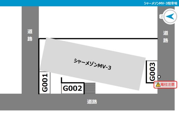 ※軽自動車、コンパクトかー(全長4.0m以下)専用です。 (ただし月極契約車両は普通車も停まっています) 【駐車場へのご案内】 ※「シャーメゾンMV-3」に付帯する駐車場です。 ※駐車場周辺の道路が狭いためご注意して通行してください。 【駐車の際にはご注意ください】 ※駐車区画が狭いため、他の駐車車両と建物に注意して駐車をお願いします。 ※現地の駐車区画番号と、駐車場情報のレイアウト図を参考に予約確認メールに記載された区画場所にお停めください。 ※周辺は住宅地ですので、アイドリング、夜間のドア開閉などに配慮をお願いします。 |