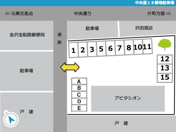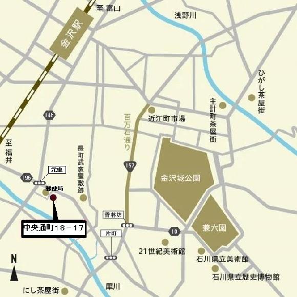 石川県金沢市中央通町18番17号アビタシオン(Google Maps) ※住所をナビに入れても正しく表示されない場合があります。 |