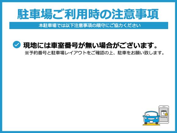 | 注意事項 | ※現地には車室番号が無い場合がございます。 |