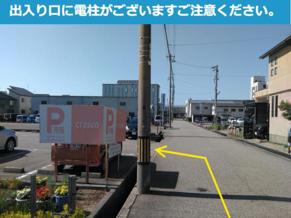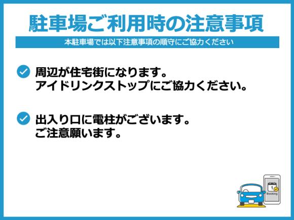 ※周辺が住宅街になります。アイドリンクストップにご協力ください。 ※出入り口に電柱がございます。ご注意ください。 |