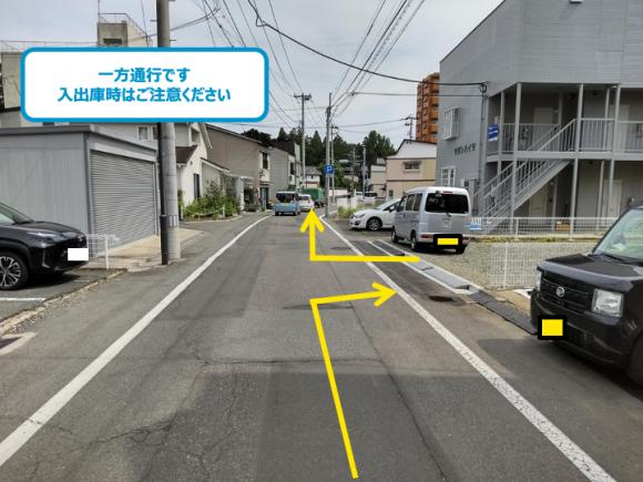 【駐車場へのご案内】 ※「サザンハイツパーキング」内です。 ※前面道路は一方通行です。 【駐車の際にはご注意ください】 ※駐車前にレイアウト図を確認の上で、予約確認メールに記載された区画場所にお停めください。 ※周辺は住宅地ですので、アイドリング、夜間のドア開閉などに配慮をお願いします。 ◇降雪時のお願い◇ 本駐車場の除雪はお客様自身にてご対応をお願いしております。 ご予約の際はご注意ください。 |