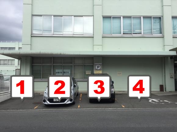 ※掲載の画像を参考に指定の番号のスペースに駐車してください。 ※アイドリングストップにご協力をお願いします。 |