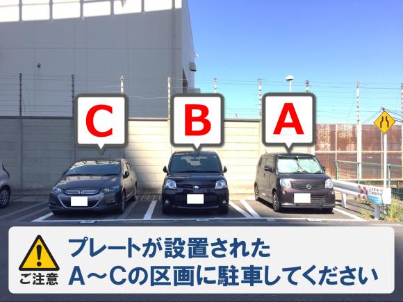 ※本駐車場は有料道路高架下にあります。 ※ご予約区画は、時間貸駐車場手前のエリアです。お間違いのないようにご注意ください。 ※誤って時間貸駐車場にて精算された場合には、ご返金致しかねますことご了承ください。 ※ご予約区画には、ロゴが記載されたプレートが設置されています。ご確認の上、駐車してください。 |