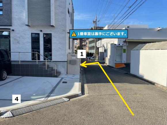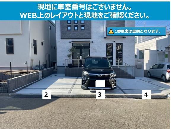 ※現地には車室番号はございません。WEB上のレイアウトをご確認の上、指定された番号区画に駐車してください。 ※1番車室は、建物裏側にございます。 ※アイドリング・騒音は近隣のご迷惑となりますのでご遠慮ください。 |