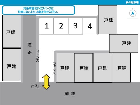 ※現地に車室番号はございません。 ※WEB上のレイアウトをご確認の上、指定された番号の区画に駐車してください。 ※騒音・アイドリングは近隣のご迷惑となりますため、ご遠慮ください。 |
