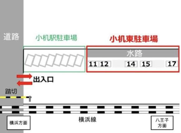 JR横浜線の小机駅から東へ徒歩4分の駐車場です。