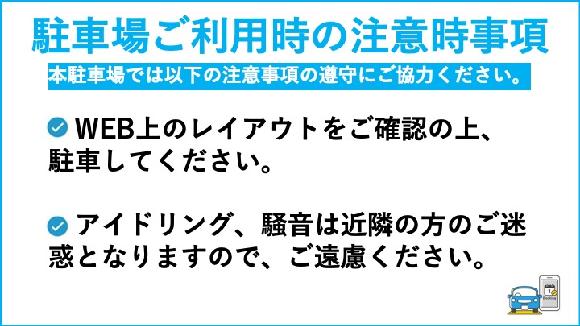 | 注意事項 | ・近隣の方へのご迷惑にならないよう、アイドリングはおやめ下さいますよう、ご協力お願いします。 |