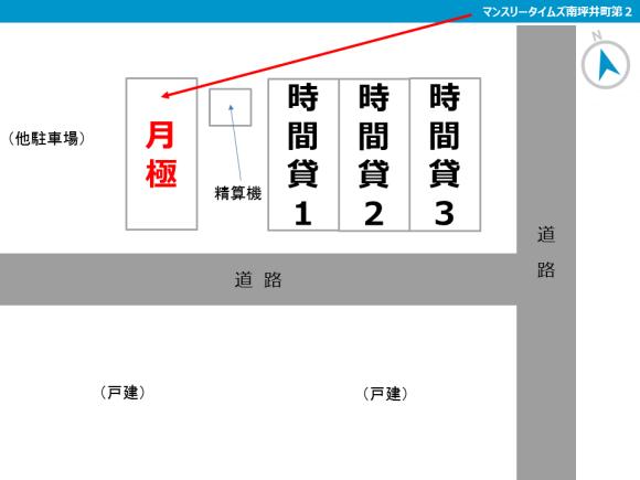 【駐車場へのご案内】 ●月極駐車場内に駐車区画があります。 ●カーナビ等でピンポイントに指定されない場合は、「GoogleMapsで見る」のボタンから正しい位置をご確認ください。 【駐車の際にはご注意ください】 ●周辺道路の交通量が多く、自転車・歩行者に十分注意してください。 ●現地に記載の番号が見えづらい場合があります。駐車場情報のレイアウト写真を確認の上で指定の区画にお停めください。 ●周辺は住宅地ですので、アイドリング、夜間のドア開閉などに配慮をお願いします。 |