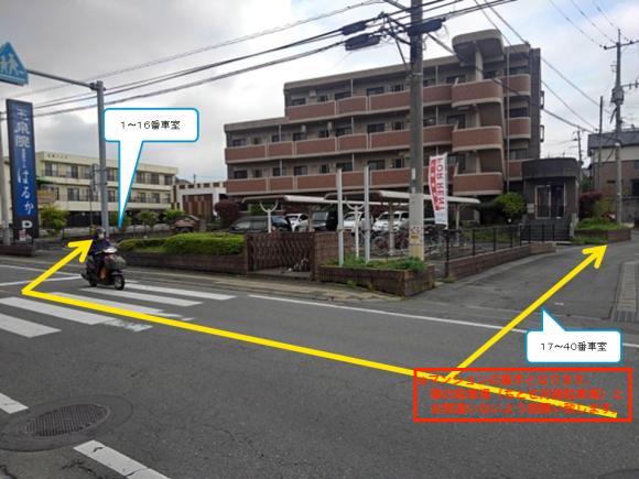 【駐車場へのご案内】 ※隣地の駐車場(ちとせ月極駐車場)とお間違いないように御願い致します。 ●カーナビ等でピンポイントに指定されない場合は、「GoogleMapsで見る」のボタンから正しい位置をご確認ください。 【駐車の際にはご注意ください】 ●周辺道路の交通量が多く、自転車・歩行者に十分注意してください。 ●現地に記載の番号が見えづらい場合があります。駐車場情報のレイアウト写真を確認の上で指定の区画にお停めください。 ●周辺は住宅地ですので、アイドリング、夜間のドア開閉などに配慮をお願いします。 |