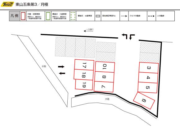 ■地面に機器がない、月極の駐車スペースをご利用ください。 ■誤って時間貸の駐車スペースをご利用された場合、返金はできかねます。 ■付近の駐車スペースに月極契約が入っておりますので、必ず指定された場所の枠線内に駐車してください。 ■本駐車場は若干の傾斜がございます。車高の低いお車でご利用される際は十分お気をつけください。 |