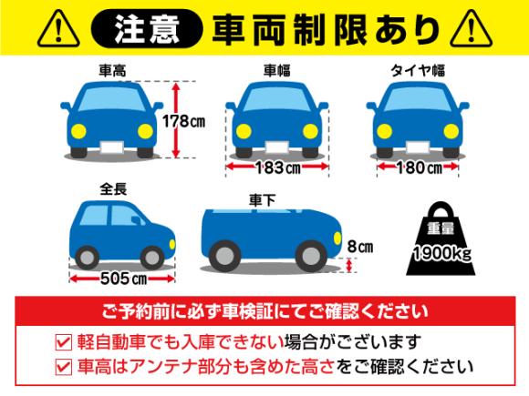 ─────── ご予約時の注意 ─────── ◇利用当日の入出庫 利用当日の入出庫は1回限りとなります。 ※出し入れ自由ではありません 2回目以降の入庫は通常の時間貸しの料金をお支払いください ◇利用可能時間以外の駐車は、出来ませんのでご注意ください。 ※営業時間である24:00までには、出庫願います。 ◇サイズ制限がある駐車場です。車検証等で事前に【車高・全長・車幅・車下・タイヤ幅・重量】を必ずご確認の上ご予約して下さい。 ◇輸入車やスポーツカー等のタイヤ幅が広い車、車高の低い車のご利用もできない可能性があります。 ◇ご来場時、万が一サイズ制限によって駐車できなかった場合、ご返金は出来ませんのでご注意下さい。 ─────── ご利用時の注意 ─────── ◇駐車場に到着した際は必ず「タイムズのBで予約済」であることを係員に伝え、予約完了メールまたはマイページの予約画面を提示してください。 ◇出庫の際も、メールもしくはマイページを現地係員にお渡ししていただくようお願い致します。 ◇他の割引サービスとの併用はできませんので、ご注意ください。 |