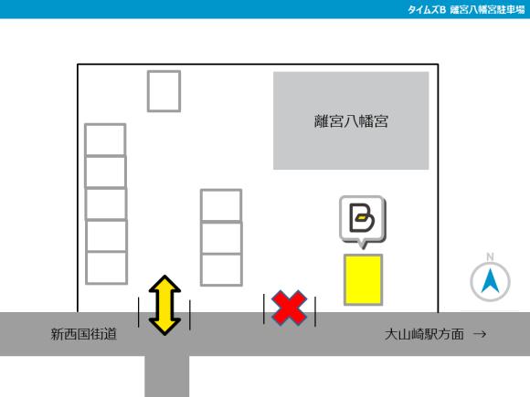 【駐車場へのご案内】 ご利用いただく駐車場の住所で検索しても、ナビや地図アプリでは正しく表示されない場合がございます。 カーナビで「離宮八幡宮」と検索すれば近隣の住所が表示されます。 住所下にある「GoogleMAPで見る」のボタンを押して頂くと正しい場所が表示されます。 ■現地に到着した際は、必ずタイムズBの写真や配置図をご確認の上、駐車してください。 間違って他の利用者の場所に駐車しないよう、お気を付けください。 |