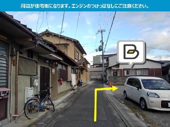 【駐車場へのご案内】 ※写真に掲載しております黄色い線が、ルートになります。写真を参考に出庫、駐車をお願いします。 ※本ページ記載の住所で検索しても、カーナビ等で正しく表示されない場合があります。「GoogleMapsで見る」のボタンから、正しい位置をご確認ください。 ※駐車場入り口への進入路が狭くなっていますので、通行時は歩行者等に充分ご注意ください。 ※前面道路が、狭くなっておりますので駐車の際はご注意願います。 【駐車の際にはご注意ください】 ※駐車場内の通行時は、歩行者・他の車両に充分ご注意ください。 ※掲載の配置図を参考に、お間違いのないように駐車してください。 |