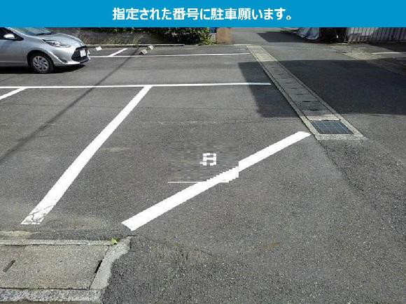 【駐車場へのご案内】 ※写真に掲載しております黄色い線が、ルートになります。写真を参考に出庫、駐車をお願いします。 ※本ページ記載の住所で検索しても、カーナビ等で正しく表示されない場合があります。「GoogleMapsで見る」のボタンから、正しい位置をご確認ください。 ※駐車場入り口への進入路が狭くなっていますので、通行時は歩行者等に充分ご注意ください。 ※指定された番号に駐車願います。 ※前面道路が、狭くなっておりますので駐車の際はご注意願います。 【駐車の際にはご注意ください】 ※駐車場内の通行時は、歩行者・他の車両に充分ご注意ください。 ※掲載の配置図を参考に、お間違いのないように駐車してください。 |