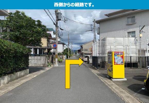●駐車場入り口への進入路が狭くなっていますので、通行時は歩行者等に充分ご注意ください。