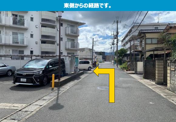 ●写真に掲載しております黄色い線が、ルートになります。写真を参考に出庫、駐車をお願いします。
