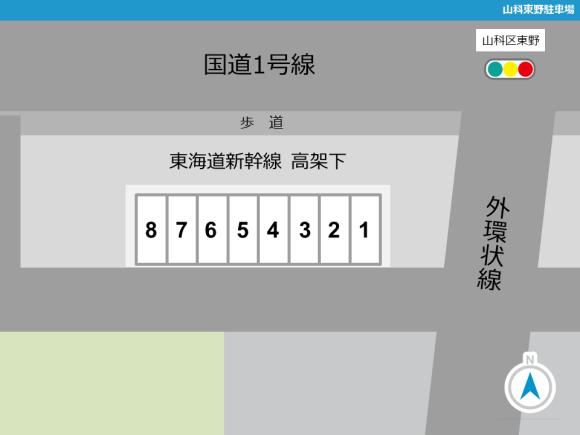 【駐車場へのご案内】 ※新幹線高架下(南側)の月極駐車場「山科東野駐車場」内です。 ※高架下で同じような区画が続いているため、写真とレイアウトを確認してお越しください。 【駐車の際にはご注意ください】 ※指定区画以外には月極契約車がいるため、必ず指定番号にお停め下さい。 ※周辺は住宅地ですので、アイドリング、夜間のドア開閉などに配慮をお願いします。 当駐車場はB利用と月極契約とを並行して募集しているため、万が一双方のお申し込みがバッティングしてしまった際にはご利用いただけない可能性がございます。恐れ入りますが予めご了承のうえご予約をお願いいたします。 |