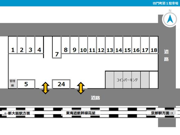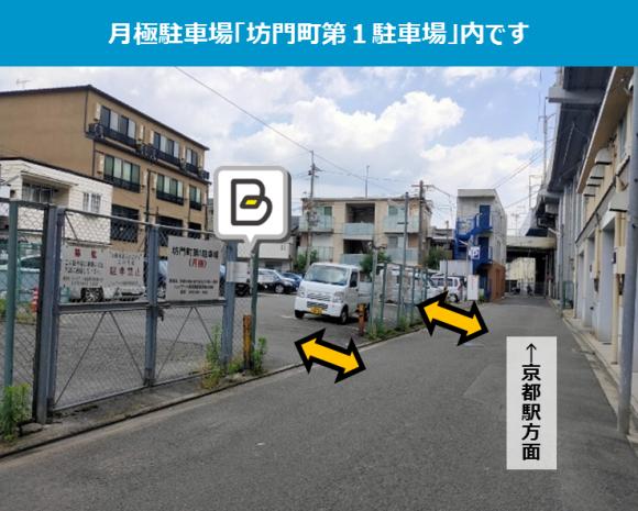 【駐車場へのご案内】 ※月極駐車場「坊門町第1駐車場」内です。 ※同じ駐車場内に時間貸し区画がありますので、機械(フラップ)が付いている区画には停めないようにご注意ください。 【駐車の際にはご注意ください】 ※指定区画以外には月極契約車がいるため、必ず指定番号にお停め下さい。 ※周辺は住宅地ですので、アイドリング、夜間のドア開閉などに配慮をお願いします。 当駐車場はB利用と月極契約とを並行して募集しているため、万が一双方のお申し込みがバッティングしてしまった際にはご利用いただけない可能性がございます。恐れ入りますが予めご了承のうえご予約をお願いいたします。 |