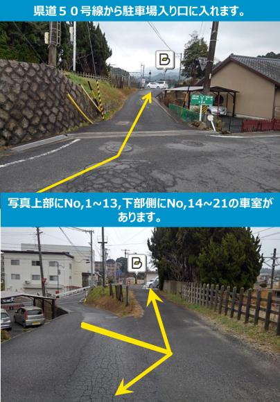 【駐車場へのご案内】 ご利用いただく駐車場の住所で検索しても、ナビや地図アプリでは正しく表示されない場合がございます。 住所下にある「GoogleMAPで見る」のボタンを押して頂くと正しい場所が表示されます。 ■県道50号線から駐車場に入った後、道が二手に分かれます。 向かって左手側にNo,1-13、右手側にNo,14-21の車室がございます。 駐車スペースの止め間違いにご注意ください。 ■現地に到着した際は、必ずタイムズBの写真や配置図をご確認の上、駐車してください。 間違って他の利用者の場所に駐車しないよう、お気を付けください。 ※現地に記載されている番号が見えにくい場合もございます。 |
